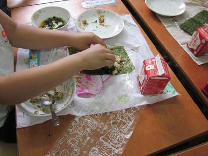 今日の給食ですが,おにぎりにして【自分でいただく】ので,いつもより楽しみがあるようです。