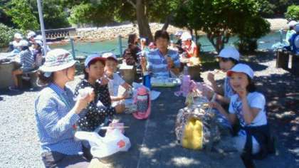後ろに見えているのは,深谷水道(英虞湾と太平洋を結ぶ運河)です。