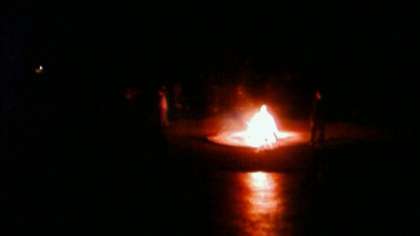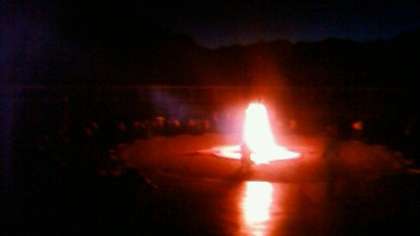 キャンプファイアーで,ゲームや歌を楽しんでいます!