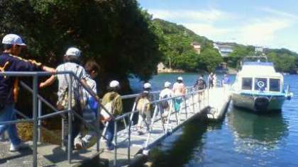 退所式で旗をおろします。なかよし港から船に乗ります。