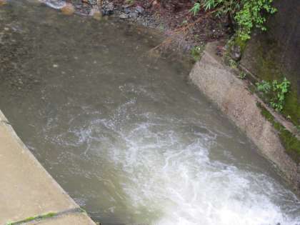 いつもより濁って見えます。激しい雨降りの後はこうなることが多いです。