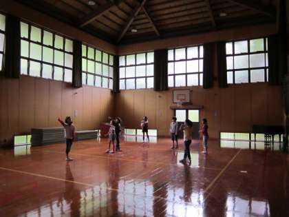 雨の日に,体育館で何をするか…。今日はパスゲームです。