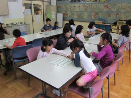 低学年と対戦する時には,並べ方を工夫して,低学年が札を取りやすいように考えている児童がいるようです。優しいですね。