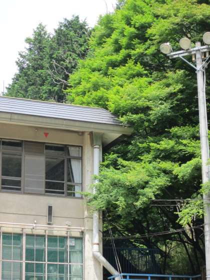 校舎東の山側から,『カエデ』が‘にょきにょき…’と伸びています。現在,業者の方と相談中です。(時期を見て,剪定・伐採の方向です。)