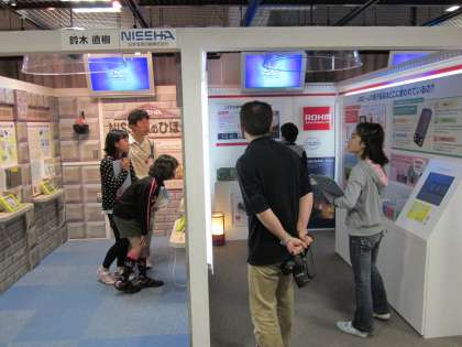 1時間目は,指導の先生や‘モノレンジャー先生’にアドバイスをいただきながらの見学です。京都ゆかりのモノづくりの会社のブースを見て回りました。本校の近所の‘川島織物様’や,児童に人気の‘任天堂様’のブースもありました。