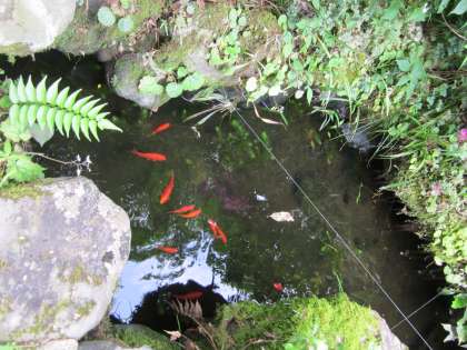 金魚の池の水位が下がっています。この土・日で下がったのか,漏水なのか,調べてもらいます。