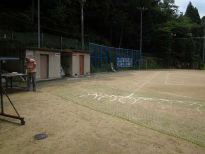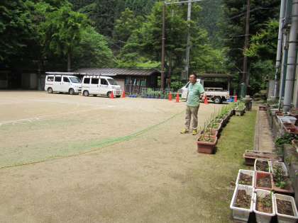 『緑のカーテン』の準備をしています。毎年,遮光効果が期待できます。