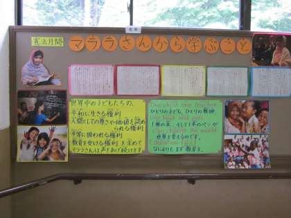 5年生の掲示板の様子です。英語に興味・関心を持ってもらえるよう,掲示しています。