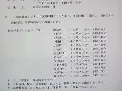 来週の水曜日は自由参観です