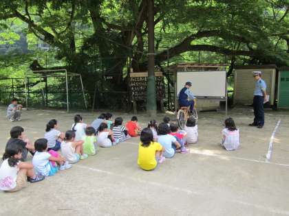 5時間目の自転車教室に,下鴨警察からお越しいただきました。ご準備から講義,アドバイス・後片付けまでお世話になりました。