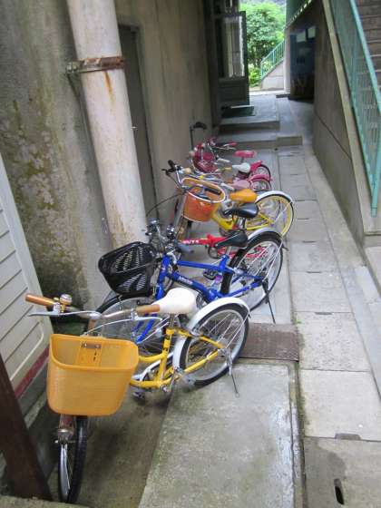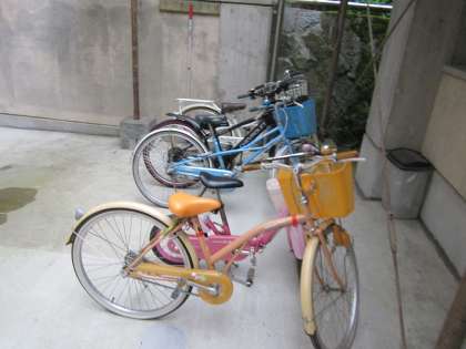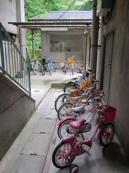 児童の自転車は,画像のような場所に並べてありますので,学校にお立ち寄りの際,お持ち帰りいただきますよう,お願いいたします。(ブレーキの効き器具やタイヤの空気圧・サドルの高さなど,今一度ご確認いただければ幸いです。よろしくお願いいたします。)
