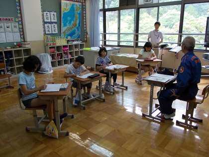 鞍馬消防団の岸本団長様に来校いただき,お話を聞きました。