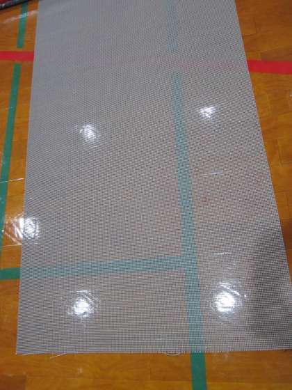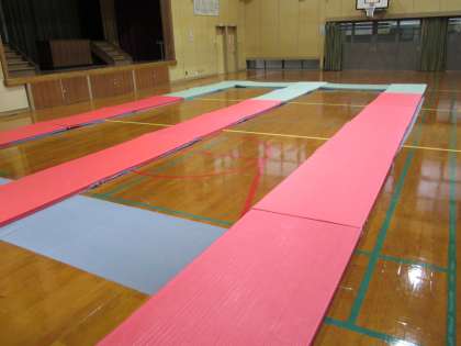 まず【滑り止めゴムシート】を敷きます。次に重い畳を周囲と中央に敷きます。最後に軽量マットを敷きつめて完成です。