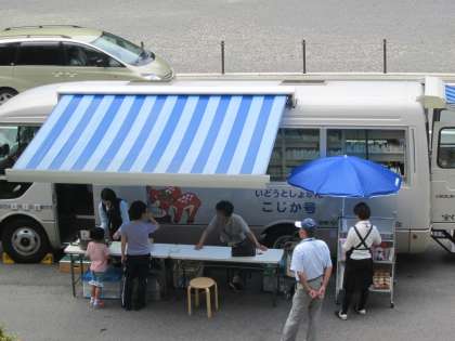 今月のこじか号がやってきました。本好きな鞍馬っ子は進んで借りに行きます。
