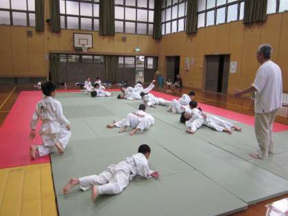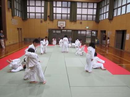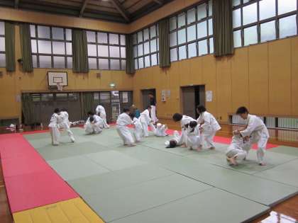 〖約束稽古〗で大切なことは,“怪我をしない・させない”ことです。投げる時も投げられる時も,しっかりと受け身をして安全に練習します。(特に学年や体重差が大きい場合)