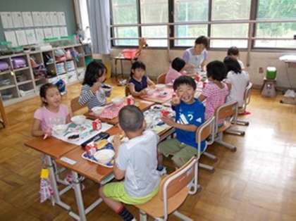低学年の様子です。みんな行儀よく食べています。