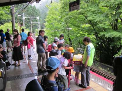 帰りの電車で,卒業生を見つけました。大変うれしそうな表情で,そばに寄っていきました。