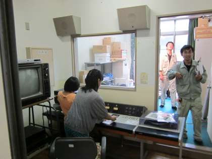 掃除時間になりました。児童の活動中,たまたま放送室の確認・点検に来られました。