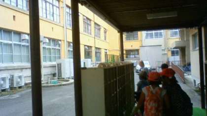 無事,到着しました。生き方探究館は元滋野中学校の校舎を利用して造られた施設です。