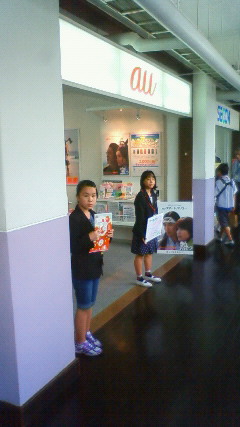 下:カードなど、グッズを見せて、客を呼びます。