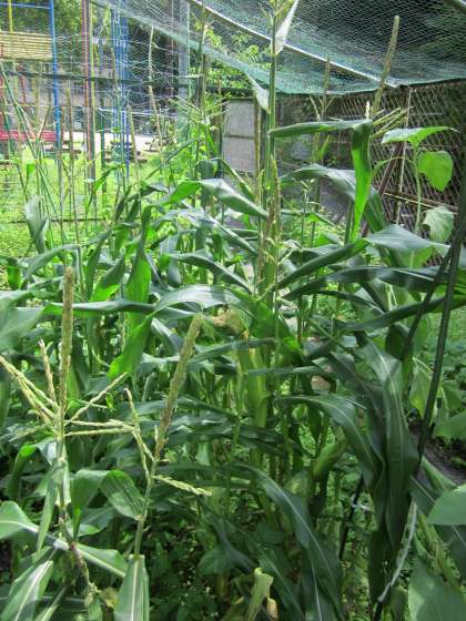 トウモロコシが大きくなってきました。猿に注意してまいります。