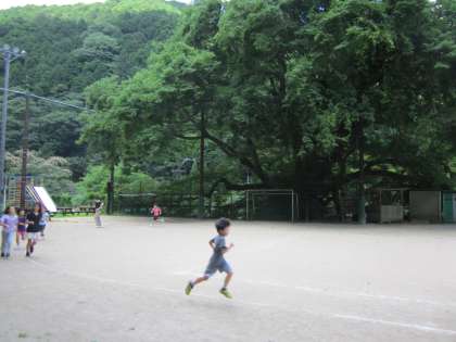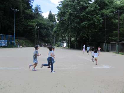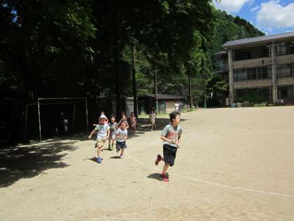 暑いので,みんなゆっくり(時々歩きながら)5分間走をしました。