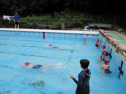 気温31度,水温27度,児童は自分の記録にチャレンジしていました。