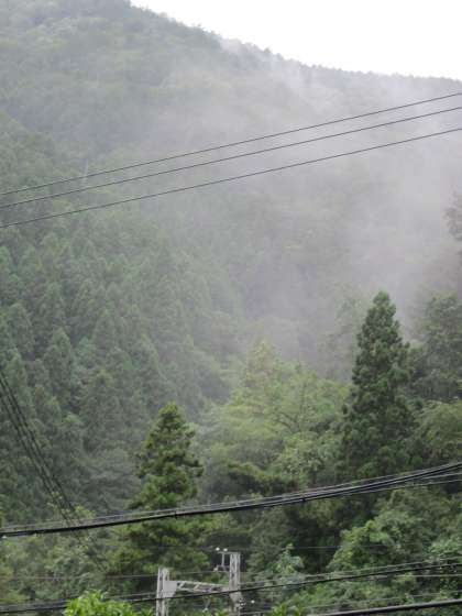 貴船の山に霧が発生。風は随分と弱くなってきました。