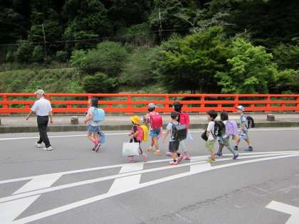 ご心配をおかけしておりました【通学路変更】ですが,鞍馬駐在所からも応援いただき,安全に登校できました。