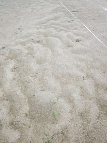 今日偶然,砂紋(さもん)を見つけました。運動場の,比較的真ん中寄りに,規則的な波状の起伏がありました。