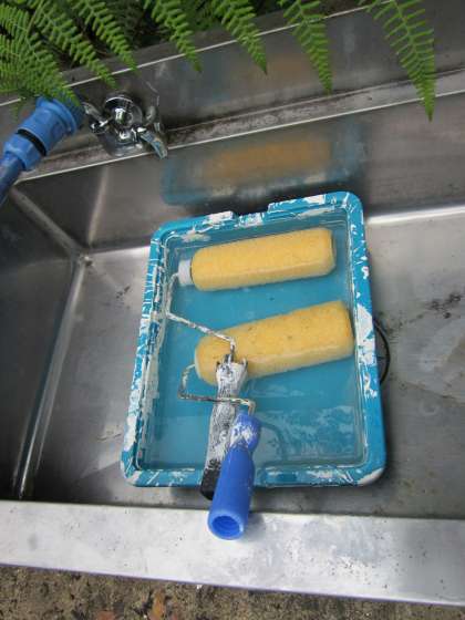 台風前に,管理用務員・事務職員で,プールの補修をしています。かなりきれいになりました。