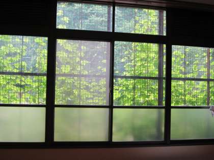 緑のカーテンが成長し,電気を消すと薄暗く感じます。