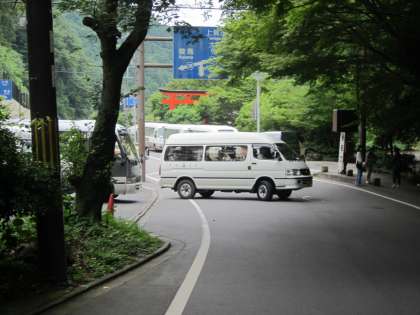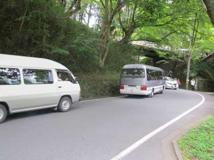 10〜30人乗りくらいのマイクロバスが,観光客をのせています。路線バスも満員のようでした。
