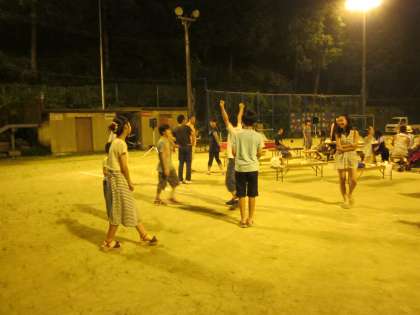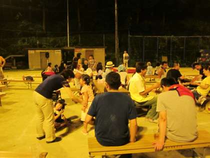 鞍馬学区の皆さんが,食べて歌って楽しい時間が続きます。卒業生が遊んでくれています。