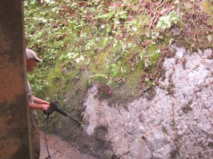 水圧で苔がめくれていきます。