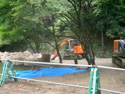 まもなく通行止め解除と聞いています。(河川工事は続きます。)