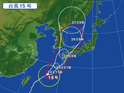 非常に強い台風15号は,今日午後に沖縄本島地方や奄美地方に最接近,明日には強い勢力で九州に接近する見込み。西日本は今夜遅くから25日にかけて,大雨による各災害にも警戒が必要です。