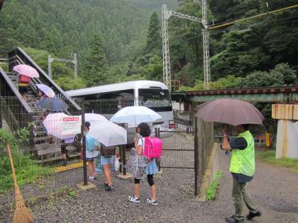 横断歩道橋も久々でした。朝からクモの巣を取りました。
