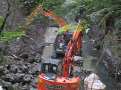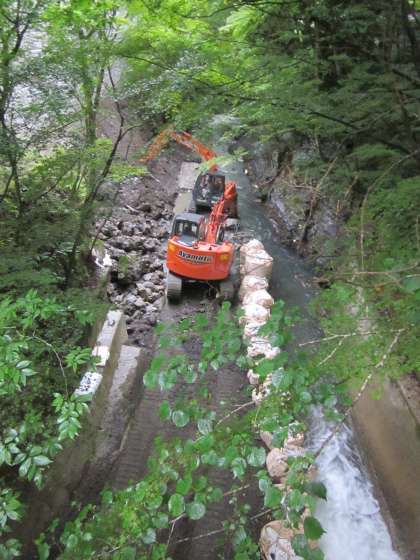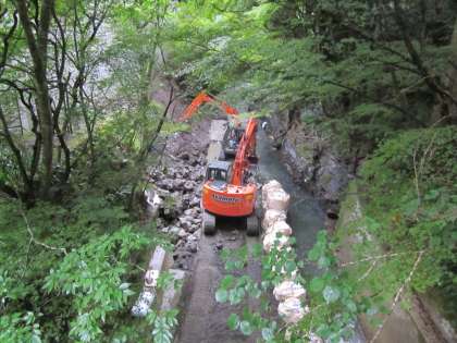 河川工事現場の方が,早朝から川に入って作業をされていました。天候によっては中止されることもあるそうです。