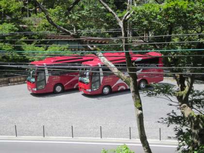 観光バスがとまっています。観光客が貴船に行っているのでしょうね。