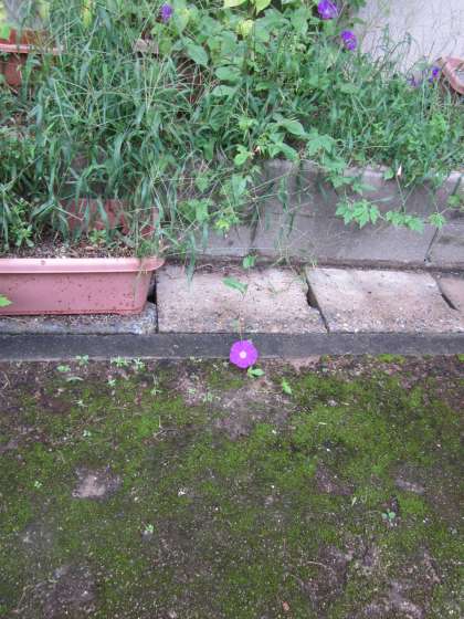 アサガオのつるが下に伸びていまして,勘違いしそうです。