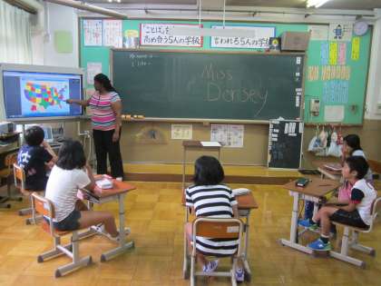 今日から新しいALTの先生に来ていただいています。お名前は黒板のとおりです。『ドーシー先生』とお呼びしようと思っています。