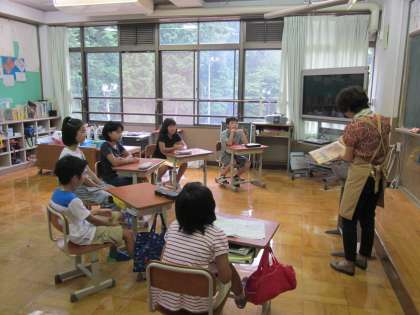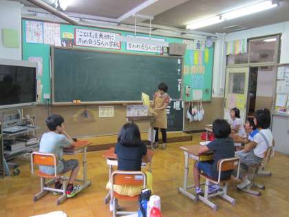 【難民】として過ごしている人々のお話です。川島先生の読み聞かせを,5・6年児童は真剣に聞いていました。