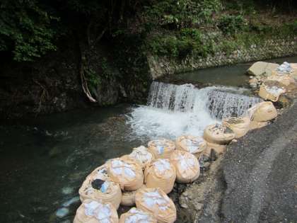 見に行くと,工事の方はおられませんでした。(最近,河川工事はされていないようです。)