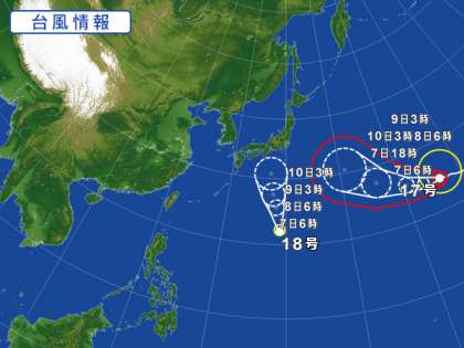 天気予報を見ていると,新たな台風情報が出ていました。気を付けてまいります。