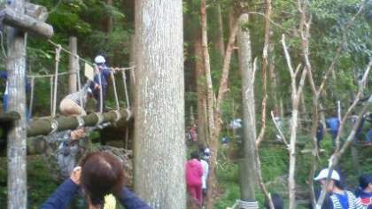 いわゆるフィールド・アスレチックです。雨のため,これだけが実施できていませんでした。楽しみにしていた子どもが多いので,晴れてよかったです。では,気をつけて行きましょう!