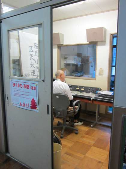 市原野小学校に出かける5年生に,他学年児童が声をかけています。放送室からは教頭先生が“英語の音楽”をかけています。