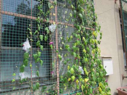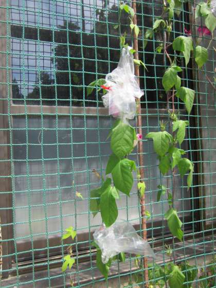 花を透明のビニール袋でおおってあります。観察ですね。