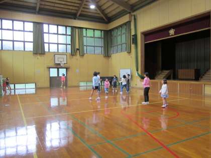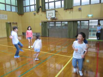 みんなで鬼ごっこをしています。わざとタッチされている児童もいました。