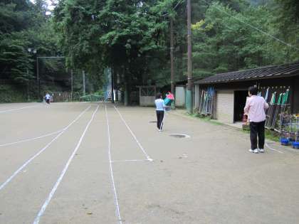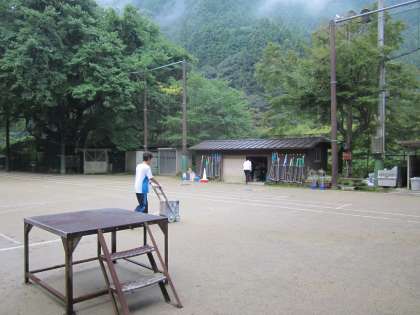 授業前の準備です。雨ですっかり白線が消えていました。